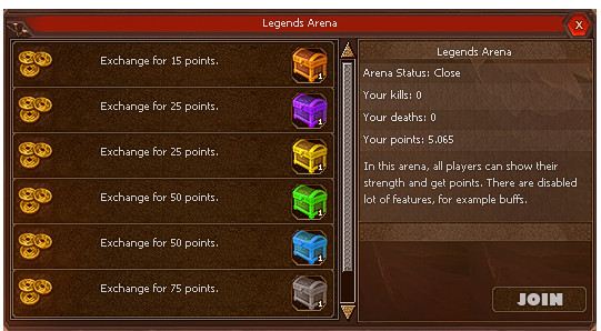 The Arena legends is a place where everyone fights against everyone else, and the points earned can be used to purchase various types of chests.