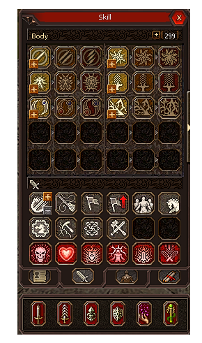 The skill tree will significantly strengthen your character, both in PvM and PvP battles. Individual skill tree bonuses can be upgraded using Upgrade Tickets (I–V), and the duration can be activated using Time Crystals. The skill tree window can be opened using the button on the minimap.